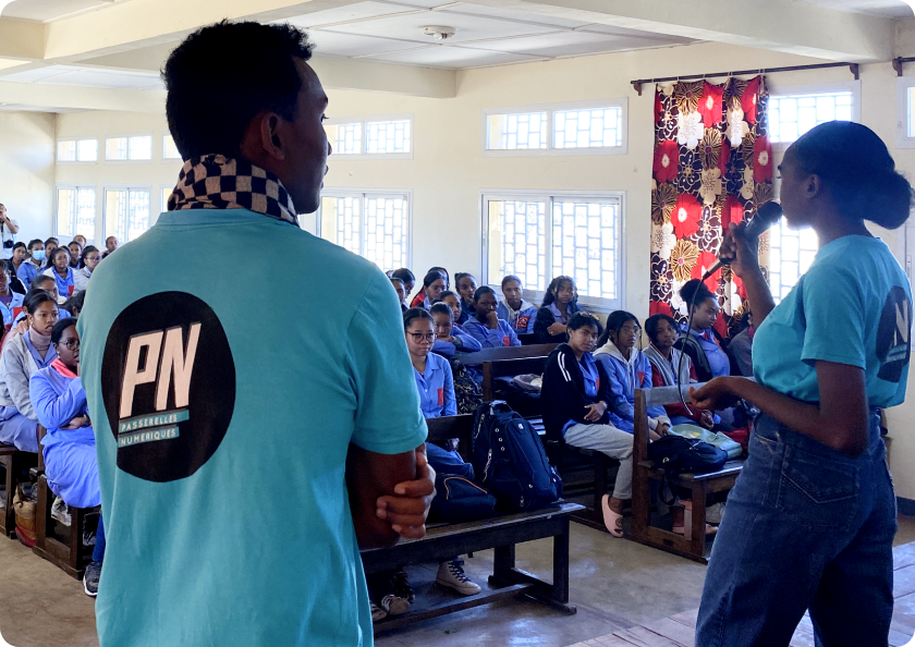 In Madagascar, our program is a 1-year preparatory program to help disadvantaged youth gain the skills to enter higher education in the digital sector. We then provide socio-educational support to these youth while they continue their studies at partner universities and obtain a diploma.