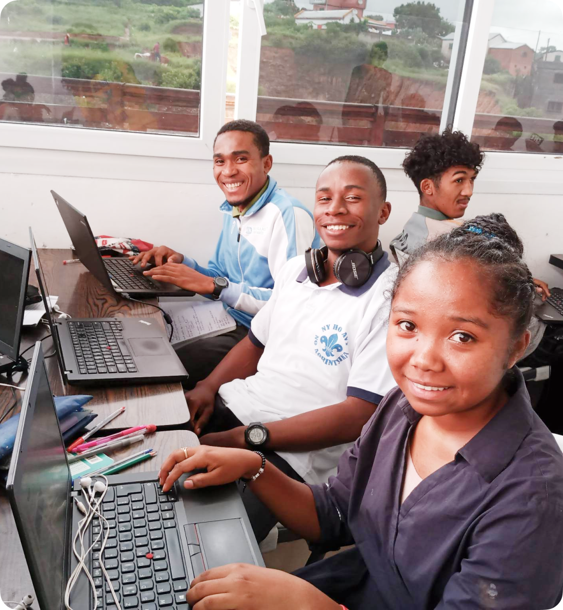 The French Development Agency supports our program. The “Vavahady Niomerika” project aims to promote access to digital training, guidance and employability for the most disadvantaged young high school graduates, and more particularly girls, in Madagascar.